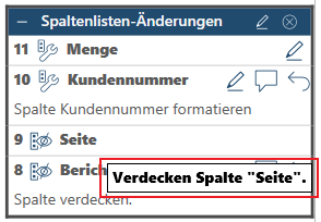 Wenn eine Änderung verdeckt wurde, wird beim Bewegen des Mauszeigers über diese Änderung ein Tooltip angezeigt, der die Änderung beschreibt.