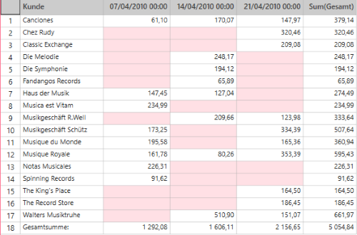 Summierungsmatrix für 20 Kunden und 5 Medientypen.