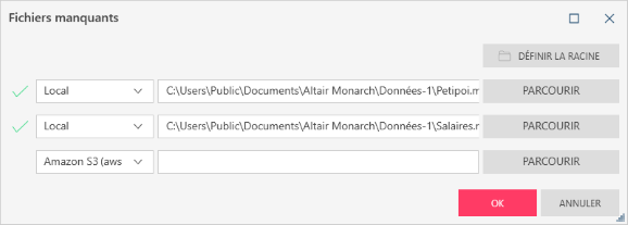 Cliquez-y sur le bouton Parcourir pour accéder à la boîte de dialogue Ouvrir (ou au navigateur Cloud), dans laquelle vous pouvez rechercher les sources par lesquelles remplacer vos tables. Vous pouvez aussi définir un dossier racine à partir duquel obtenir les sources de données de remplacement en cliquant sur le bouton Définir la racine.
