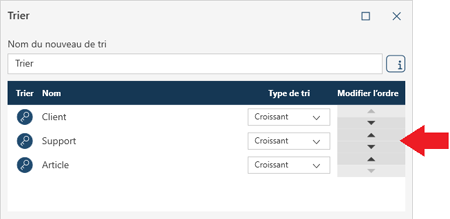 Monarch Data Prep Studio effectue le tri dans l'ordre des colonnes de tri. Vous pouvez changer l’ordre en cliquant sur la flèche haut ou bas en regard d’une colonne de tri.