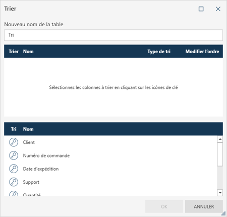 Cliquez sur OK pour accepter la définition de l'ordre de tri, ou sur Annuler pour la rejeter.