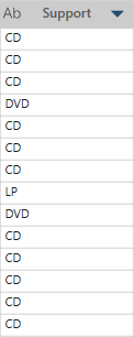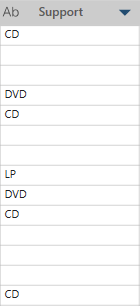 Dans cet exemple, il y a des cellules vides dans la colonne Support :