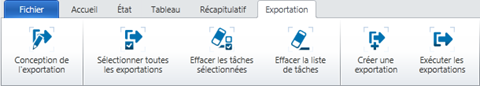 Ce ruban vous aide à définir, modifier et exécuter des exportations.