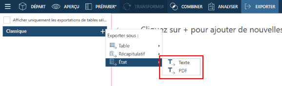 Exporter des états dans Data Prep Studio