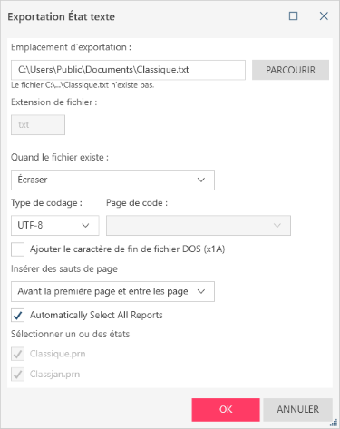 Configurer l’exportation d’un état