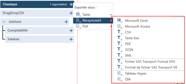 Vous pouvez exporter vos tables de récapitulatif aux formats suivants :