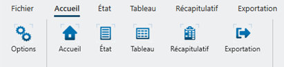 Le ruban Accueil est le premier ruban qui s'affiche au démarrage de l'application Monarch Classic.