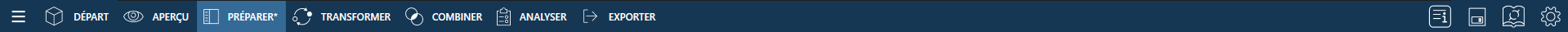 L’interface Monarch Data Prep Studio inclut une barre d’outils qui reste visible quelle que soit la fenêtre ou la page à laquelle vous accédez.