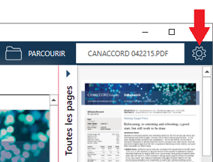 Cliquez sur l'icône Paramètres pour modifier les paramètres de l’application.