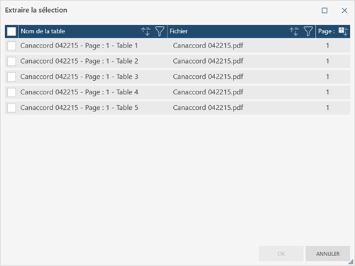 Dans la boîte de dialogue qui s'ouvre, sélectionnez les tables à importer.