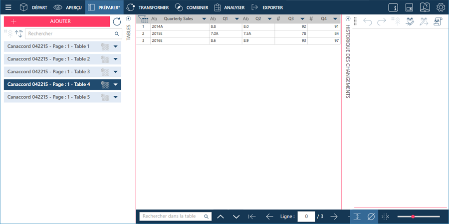 L'importation accomplie, vos tables s’affichent dans la fenêtre Préparer de Monarch Data Prep Studio :
