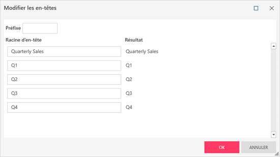 Dans l’Monarch Table Extractor, vous pouvez modifier les en-têtes de différentes manières.
