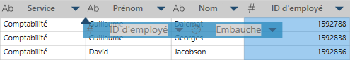 Par glissement-déplacement des en-têtes de colonne dans la fenêtre Préparer.