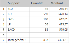 Avec un autre récapitulatif, vous pouvez même savoir quel type de support se vend le mieux.
