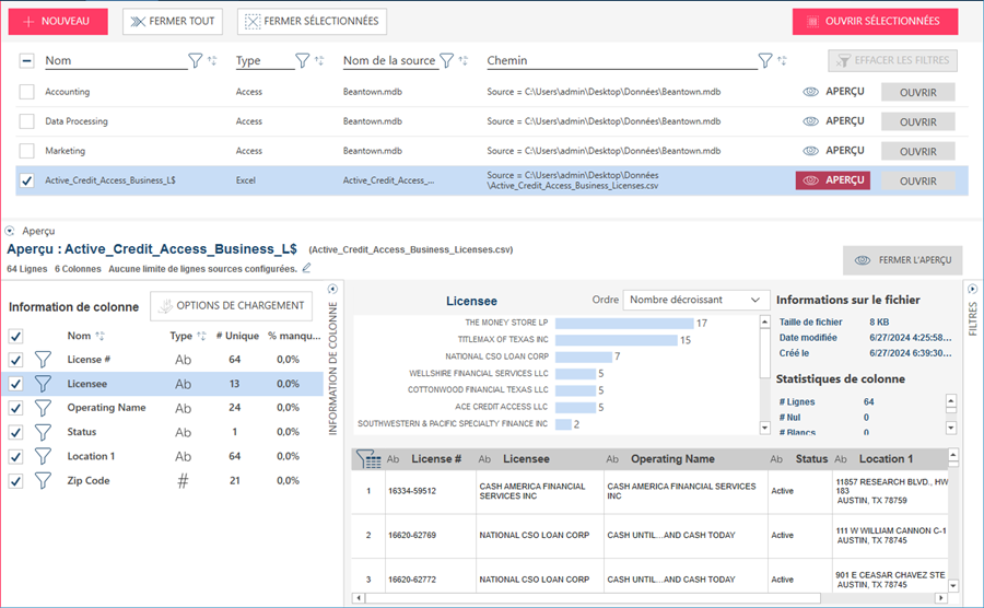 Monarch Data Prep Studio permet de filtrer les données d’une table en mode aperçu. Cette fonctionnalité permet de retrouver rapidement les enregistrements qui correspondent à certains critères.