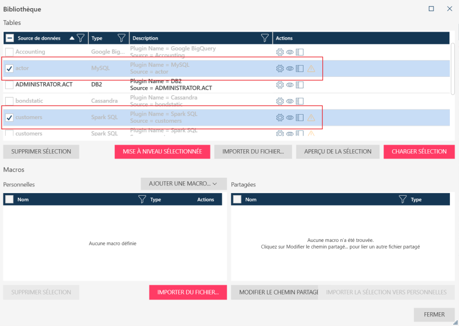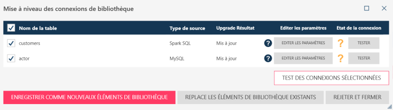 Une fois la mise à jour effectuée, vous pouvez enregistrer les tables en tant que nouveaux éléments de bibliothèque ou remplacer les éléments de bibliothèque existants.