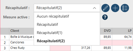 Vous pouvez créer autant de récapitulatifs que vous le souhaitez pour une table sélectionnée et vous pouvez les consulter en utilisant le menu déroulant Récapitulatif.