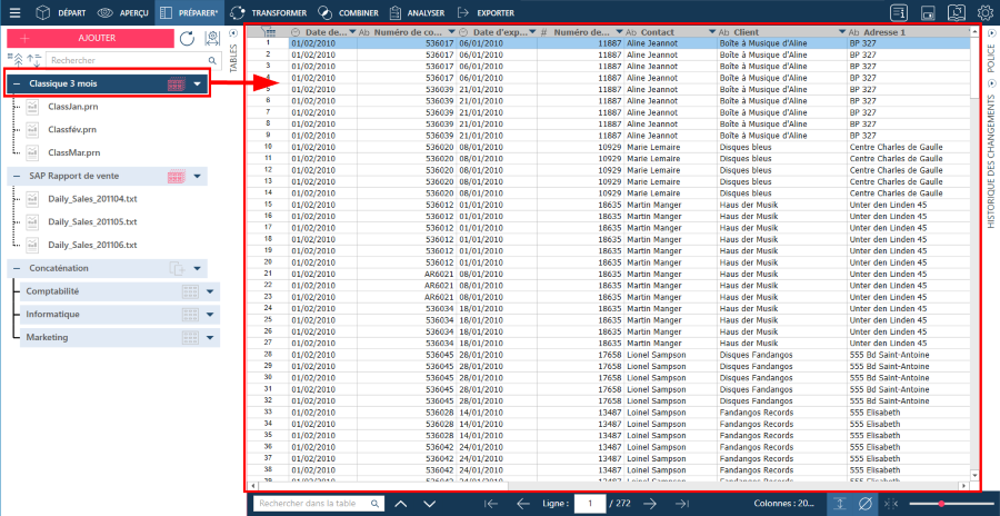 Dans la vue État, cliquez avec le bouton droit sur la ligne que vous souhaitez trouver dans la table et sélectionnez Rechercher dans la table. Vous accédez à la fenêtre d’aperçu des données, où la ligne sélectionnée dans la vue Récapitulatif est mise en surbrillance dans la table illustrée.