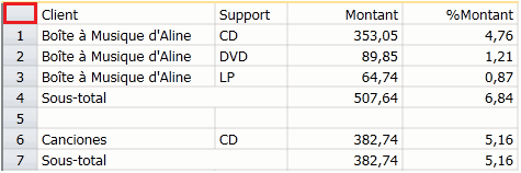 Sélection de la table entière – Pour sélectionner toute la table, sélectionnez la cellule figurant en haut à gauche de la table :