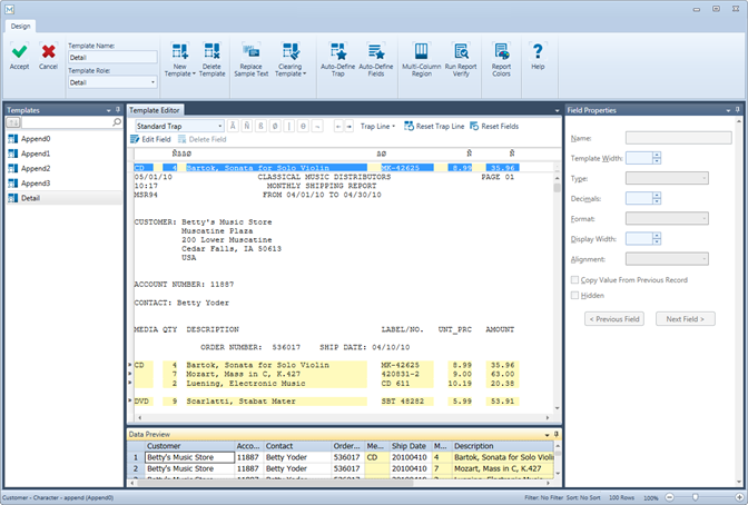 The Auto Define button in Report View can be used to quickly create a complete set of templates from open reports without you having to go through the sometimes painstaking process of studying your report to look for similar patterns to create fields.