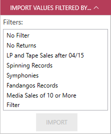 Click on Import values filtered by... button to display a list of filters and the Import button.