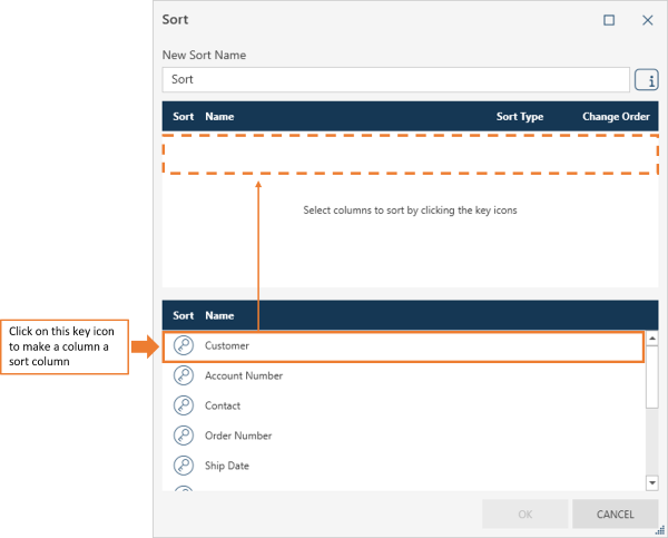 You can also remove a sort column by clicking on the key icon beside a column on the sort column list.