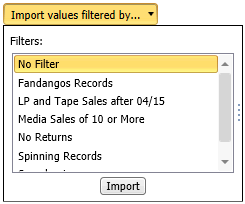 You can also click on Import values fltered by... to automatically populate the Input Value column of the lookup table, with values from the input field you specified. When you click on this button a list of filters defined for the currently-selected input field is displayed.