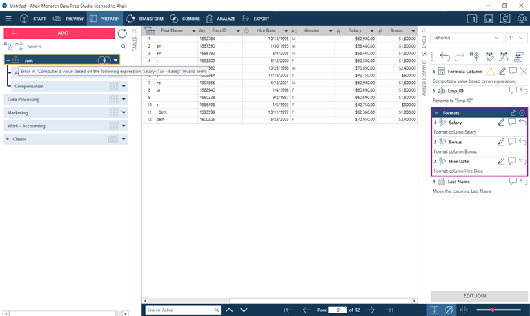 While working with tables in Data Prep Studio, you may make a change or several changes that you decide afterwards that you don't really want but only after having made other changes that you do want. Clicking the Undo This Change