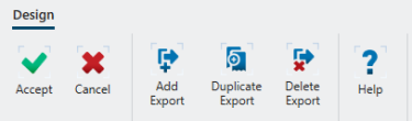 The Export Design ribbon displays when you select Export Design from the Export View window.