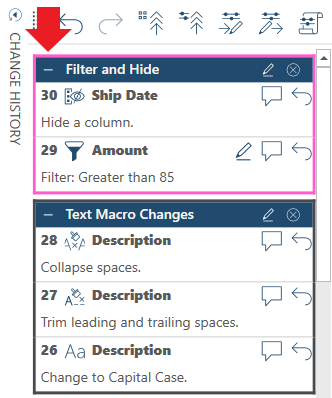 You can group multiple changes made to a single column or multiple instances of the same change into groups to avoid creating excessively long Change History lists.