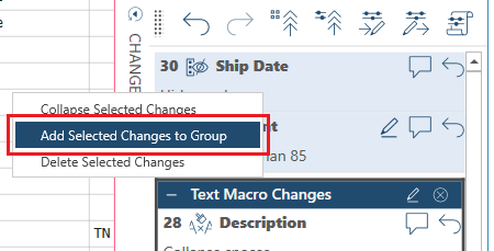 Right-click on your mouse and, from the options that display, select Add Selected Changes to Group.