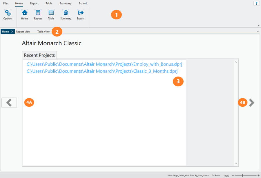View Tabs Displays tabs corresponding to currently active views. Click on tab to go to a specific view. |