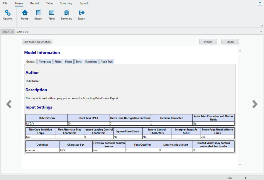 Viewing the Audit Trail and Project/Model Information Windows