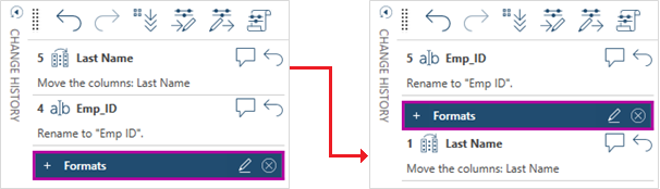 Data Prep Studio allows you to reorder changes any way you want in the Change History list.