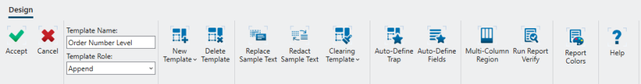 Note that only one detail, page header, start region, or end region template can be defined for any report; once these templates have been defined, they no longer appear as template options in the New Template dropdown.