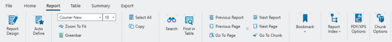 The Report View ribbon displays when Report is selected from the Home ribbon or Monarch Classic's window tabs.