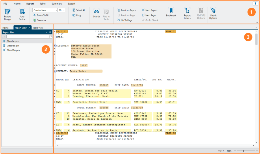 Ribbon Displays all the tools you need to work with a report. Refer to the Report View Ribbon Quick Reference. |