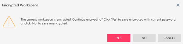 If you select Yes, your new workspace will be encrypted using the password set for the original workspace. If you select No, the new workspace can be opened without a password.