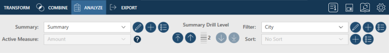 The Analyze drop-down is your take-off point for creating, viewing, modifying and managing summaries.