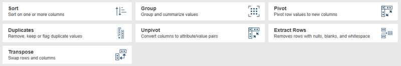- While data preparation operations are reversed/deleted using the Change History panel, table transformations are reversed/discarded by clicking on the drop-down arrow located to the right of the transformed table and then selecting Discard Transform from the options that display.