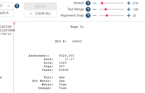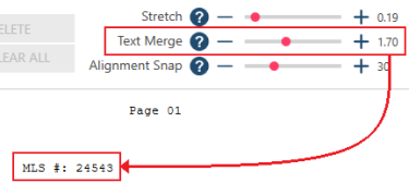 In this example, a small Text Merge value is used. The space between MLS and #: is fairly large because the merging of text is reduced.