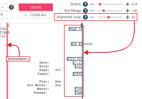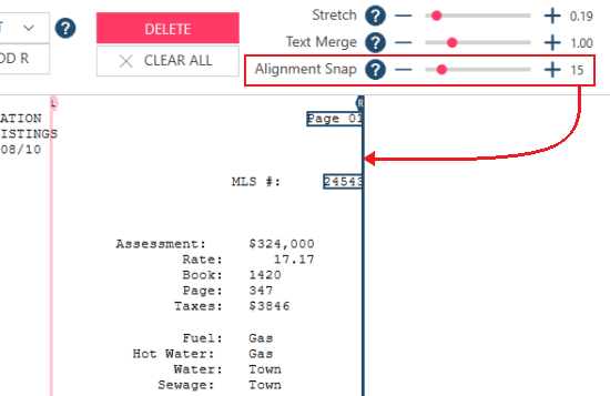 This button sets default values for Stretch, Text Merge, and Alignment Snap based on the structure of the current page. It also generates left and right alignments for vertically aligned groups of text. Note that unlike in Simple mode, when this property is selected, it is applied only to the current page of the PDF report being viewed. When the dropdown to the right of this button is selected, the option Force Left is made available. This setting removes all previously generated alignments from the PDF and creates new ones that are aligned to the left. |