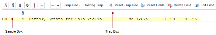 Click in the Trap box to position the cursor above a letter, number, space or punctuation character that you want to include in the trap, then type the character or click the trap button that represents the character. If necessary, use the cursor keys or the horizontal scroll bar at the bottom of the Report window to scroll the trap line and the template sample left or right.