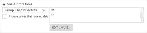If you selected the Values from table option, click the Edit Values button to display the Values from Table box: