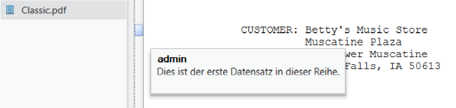Um den Lesezeichenkommentar anzuzeigen, setzen Sie den Mauszeiger im Zeilenauswahlbereich auf das betreffende Lesezeichen.