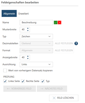Erstellen Sie einen passenden Namen für das Feld, indem Sie in das Feld Name klicken und den aktuellen Eintrag durch einen neuen ersetzen. Klicken Sie auf das Häkchen, das neben dem Feld angezeigt wird, um den Feldnamen zu übernehmen.