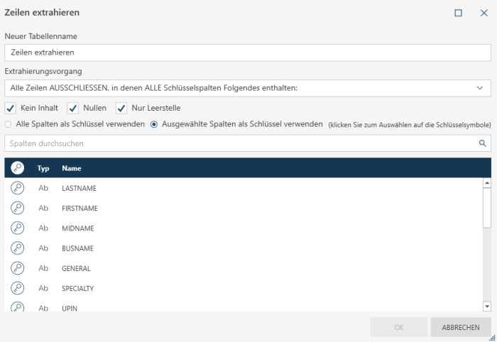 Das Dialogfeld „Zeilen extrahieren“ wird angezeigt.