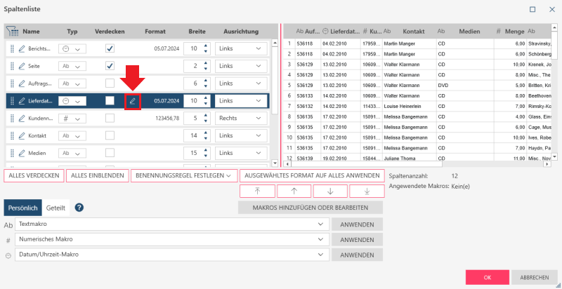 Klicken Sie auf das Symbol für Format bearbeiten neben der zu formatierenden numerischen Spalte: