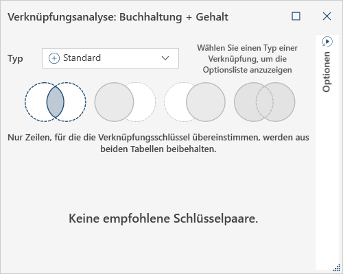 Wählen Sie einen anderen Verknüpfungstyp aus der Dropdown-Liste aus, um zu sehen, ob Sie ein besseres Verknüpfungsergebnis erhalten.