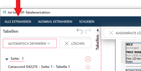 Wählen Sie Alle importieren aus, um alle Tabellen zu importieren.